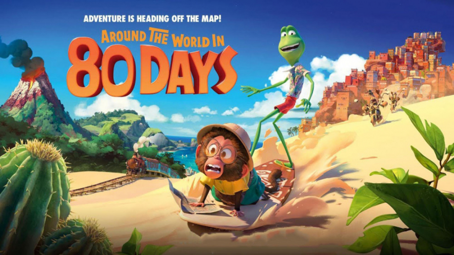 کارتون دور دنیا در 80 روز (Around the World in 80 Days) در ژانر کمدی - ماجراجویی - خانوادگی به کارگردانی ساموئل تورنو (Samuel Tourneux) در سال 2021 میلادی منتشر شد. این انیمیشن سینمایی محصول مشترک کشورهای بلژیک و فرانسه است که بر اساس برداشت و اقتباسی آزاد از یک کتاب رمان به همین نام اثر زول ورن (Jules Verne) شاعر و رمان نویس نامدار فرانسوی ساخته شده است. انیمیشن دور دنیا در 80 روز در وب سایت آی اِم دی بی - بانک اطلاعات اینترنتی فیلم ها (IMDB) موفق به کسب امتیاز 4.6 از 10 شده است. از بازیگران - صداپیشگان این انیمیشن می توان به هدر بامبریک (Heather Bambrick) ، کوری دوران (Cory Doran) ، کیتی گریفین (Katie Griffin) ، براندون مک گیبون (Brandon McGibbon) ، استفانی سکی (Stephany Seki) ، راب تینکلر (Rob Tinkler) و جیمی واتسون (Jamie Watson) اشاره کرد. این انیمیشن کمدی و خانوادگی توسط کمپانی استودیوکانال (StudioCanal) ، استودیو رسانه جنگل پنبه ای (Cottonwood Media) و با همکاری 19 کمپانی و استودیو دیگر تولید و توسط استودیوکانال در کشور فرانسه و توسط استودیو انتشارات ورتیگو (Vertigo Releasing) در کشور بریتانیا منتشر و پخش شد. کارتون دور دنبا در 80 روز در سال 2022 نامزد دریافت جایزه بهترین فیلم انیمیشنی در جشنواره جوایز لومیر (Lumiere Awards) در کشور فرانسه شده است. در خلاصه داستان انیمیشن دور دنیا در 80 روز آمده است؛ پاسپارتو یک میمون نوجوان بسیار باهوش است که به همراه خانواده خود در یک شهر زیبا زندگی می کند. این میمون نوجوان به کتاب خواندن علاقه بسیار زیادی دارد و تنها آرزویش این است که مسافرتی به دور دنیا داشته باشد. پاسپورتو از کودکی با این آرزو بزرگ شده به طوری که شب ها خواب می بیند در حال رفتن به سفری بزرگ به دور دنیاست. مادر پاسپورتو با این موضوع به شدت مخالف است و به او اجازه نمی دهد که لحظه ای از جلو چشمانش دور بماند. روزی از روزها هنگامی که پاسپورتو در کنار دریا مشغول کتاب خواندن است متوجه می شود که یک قورباغه سبز رنگ سوار بر یک تخته موج سواری با سرعت بسیار زیاد به طرف شهر در حال حرکت است. در همین حین چند مرغ ماهیخوار متوجه این قورباغه می شوند و سعی می کنند تا او را شکار کنند. قورباغه سبز رنگ متوجه این موضوع می شود و با یک مانور هیجان انگیز خود را به ساحل می رساند. او پس از رسیدن به ساحل با پاسپورتو و عده ای از اهالی شهر آشنا شده و خود را با نام فیلیس به آنها معرفی می کند. فیلیس ادعا می کند که یک جهانگرد است و در حال انجام یک مسافرت بزرگ به دور دنیاست. پاسپورتو از شنیدن این موضوع به شدت خوشحال و هیجان زده شده و با فیلیس دوست می شود. این میمون ماجراجو از فیلیس می خواهد که اجازه دهد تا در مسافرت دور دنیا او را همراهی کند. فیلیس پس از شنیدن صحبت های پاسپورتو درخواست او را قبول می کند و از اینجاست که ماجراجویی بزرگ و شگفت انگیز قهرمان داستان ما برای مسافرت به دور دنیا آغاز می شود...